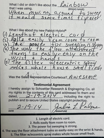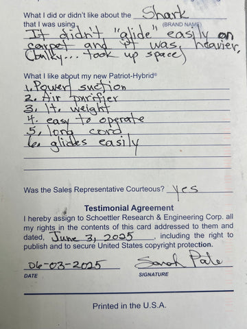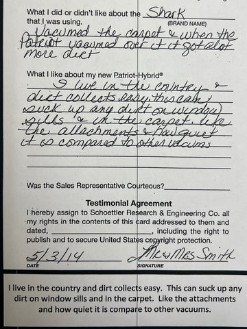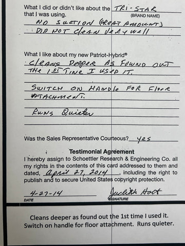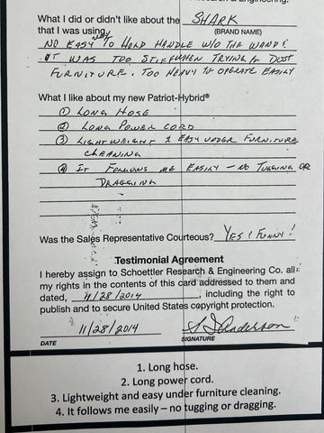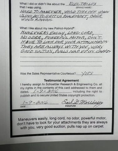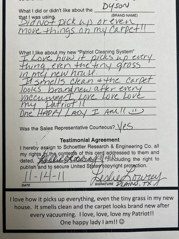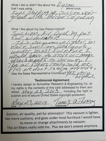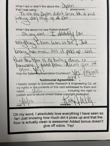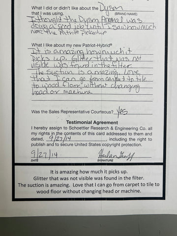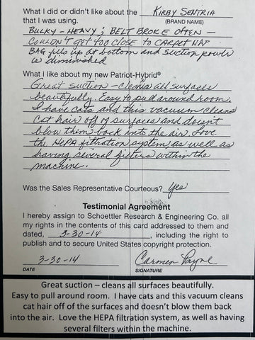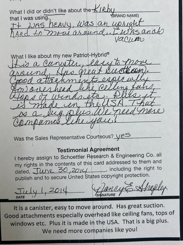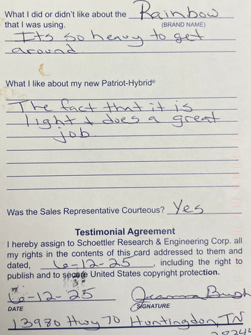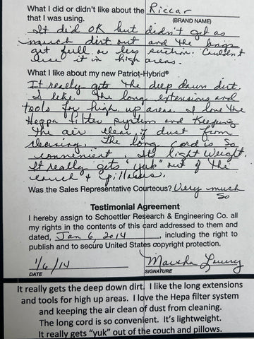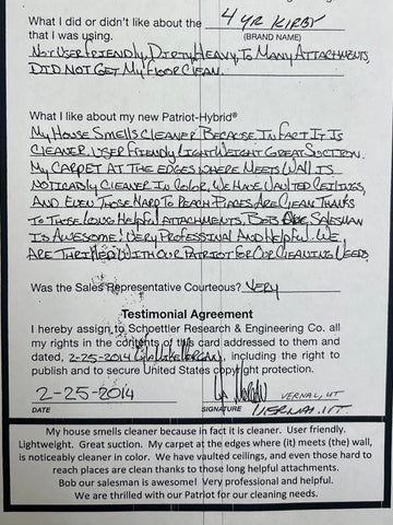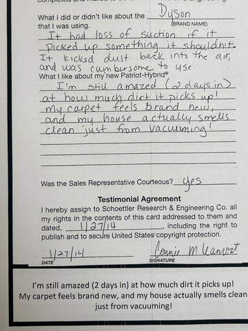 Truly Independent Customer handwritten and signed reviews and testimonials of the Patriot Hybrid Clean Air System by real people using it every day.